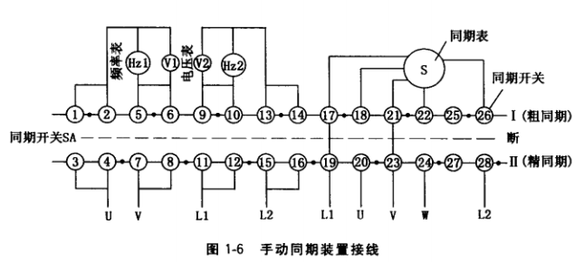 ① 要認真檢査同期裝置各儀表工作是否正常,兩只電壓表和兩只頻率表的準確度應基本 一致,無卡殼現象,以免發生儀表指示誤差。
