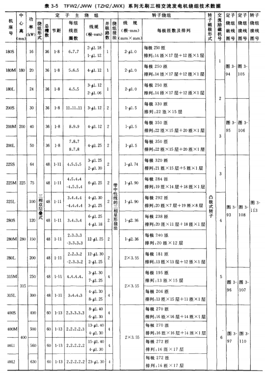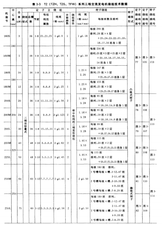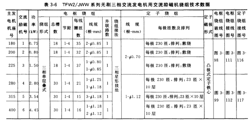 (1)繞組線規。小功率單、三相交流發電機轉子繞組一般采用漆包圓銅線,中等功率發電機一般采用漆包扁銅線。修理時根據交流發電機的型號、規格,從表3-3?表3-8中査找或采用實測法確定線規。