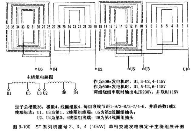 3.單相交流發(fā)電機(jī)定子繞組接線