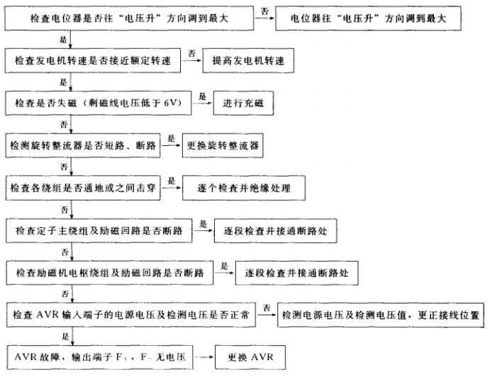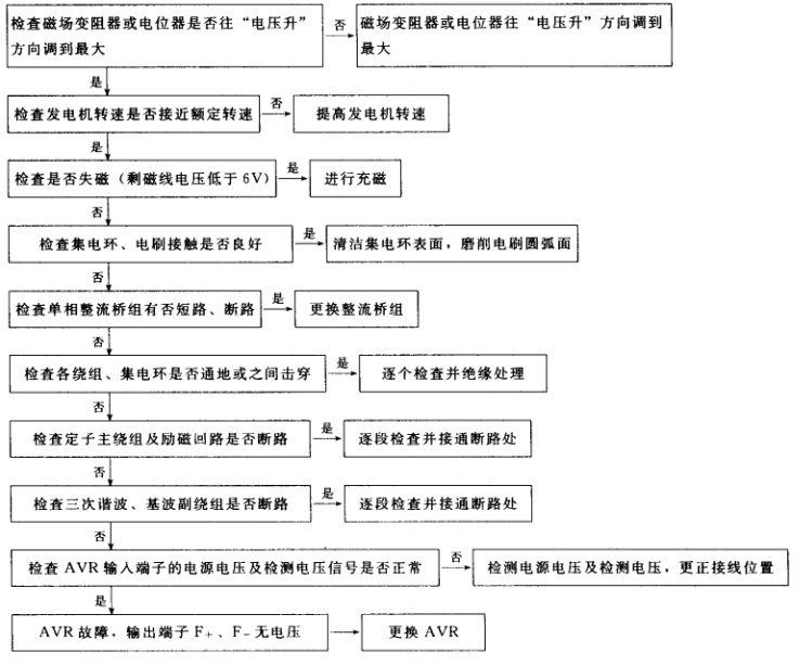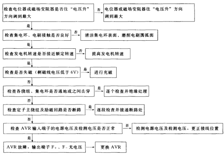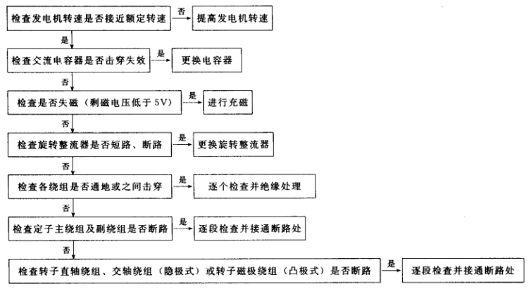 1.有刷單相交流發(fā)電機(含可控勵磁)不能發(fā)電故障排除步驟