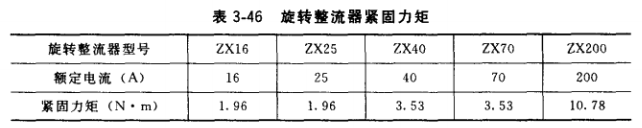 ③緊固旋轉(zhuǎn)整流器螺母時,應用扭力扳手,并控制適當?shù)牧?見表3-46。