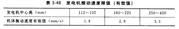 (1)故障現(xiàn)象。發(fā)電機空轉(zhuǎn)(己達額定轉(zhuǎn)速,未起勵發(fā)電)或空載(已達額定轉(zhuǎn)速,已起勵發(fā)電)、負載(已達額定轉(zhuǎn)速,已帶負載)下,機體振動速度有效值超過表3-48或振動 蝙大于0.5mm,都被視為發(fā)電機振動大,此時與發(fā)電機一體的控制箱上的測量儀表表針抖動,讀數(shù)困難。