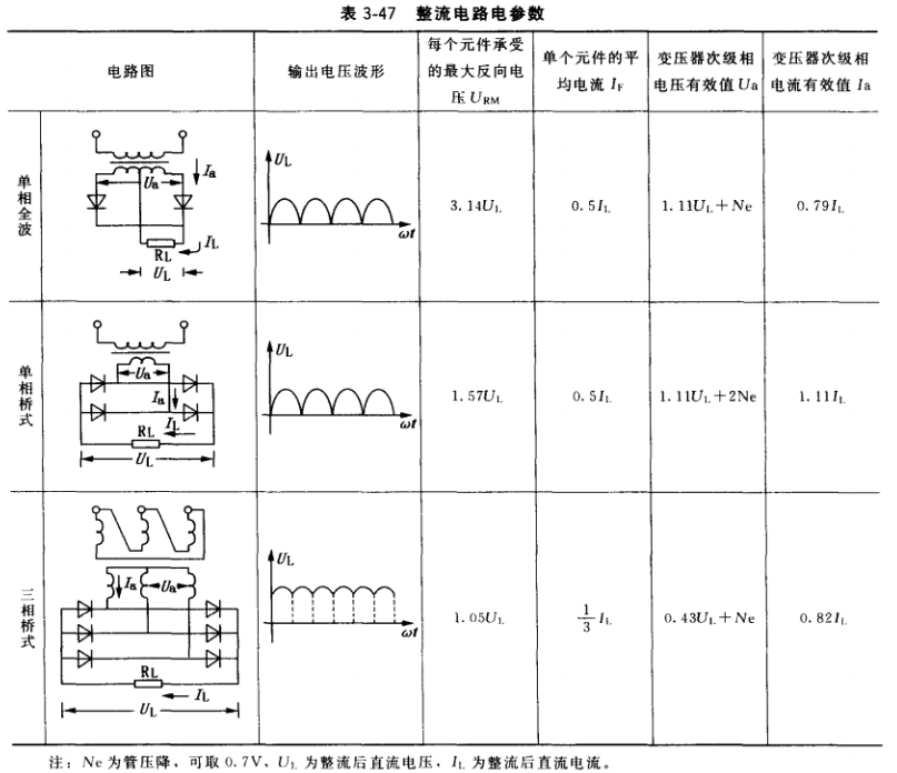 b.電流等級選擇。根據(jù)整流后的直流電流或發(fā)電機的勵磁電流,從表3-47可査到各種整流電路的單個硅元件的平均電流,然后上靠到國家標準規(guī)定的電流等級選擇硅整流管。
