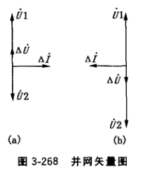 當雙繞組電抗分流發電機并網時,如果發電機端電壓U1大于電網電壓U2時,有一電 壓差ΔU出現,其方向與U1 —致。在ΔU的作用下,產生電流ΔI,ΔI滯后U1 90°。U1、U2、ΔU矢量圖如圖3-268a所示。發電機向電網輸出感性無功電流,這電流產生兩個作用:一是它的電樞反應對發電機起去磁作用;二是起相復勵作用,增加發電機的勵磁電流。如果相復勵作用過強,后者的作用將超過前者,使發電機感應電勢增大,U1升高,而U1升髙又將使ΔI增大。如此反復循環,