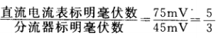 量程較小的直流電流表(如10A及以下)一般為直讀儀表,表上直接讀出電流值。但量程較大的直流電流表(如10A以上儀表電路并聯(lián)一個(gè)分流器(數(shù)值已知的小電阻,大部分被測(cè)電流通過(guò)它)。大量程直流電流表實(shí)質(zhì)上是毫伏表,被測(cè)電流在分流器上產(chǎn)生毫伏級(jí)電壓,然后將毫伏數(shù)送至毫伏表測(cè)量,并以電流值進(jìn)行刻度。當(dāng)電流表上標(biāo)明的毫伏值與 分流器上標(biāo)明的毫伏值一致時(shí),說(shuō)明電流表和分流器匹配,此時(shí)可從電流表上直接讀出電流 值。若它們所標(biāo)明的毫伏值不一致,說(shuō)明不匹配,此時(shí)必須對(duì)電流表的讀數(shù)進(jìn)行換算。例 如,有一只150A的直流電流表,表上標(biāo)明75mV,因買(mǎi)不到150A, 75mV分流器,用一只 150A、45mV的分流器代替。本來(lái)當(dāng)通過(guò)150A電流時(shí),在分流器上應(yīng)產(chǎn)生75mV電壓,電 流表的指針應(yīng)指在150A的刻度上。但用了 150A、45mV分流器后,當(dāng)分流器通過(guò)150A電 流吋,只產(chǎn)生45mV電壓,電流表的指針只能指在90A的刻度上,比原來(lái)少了 60A,產(chǎn)生 了讀數(shù)誤差。為確保讀數(shù)正確,必須乘一個(gè)系數(shù)(分流比修正系數(shù))K, K =
