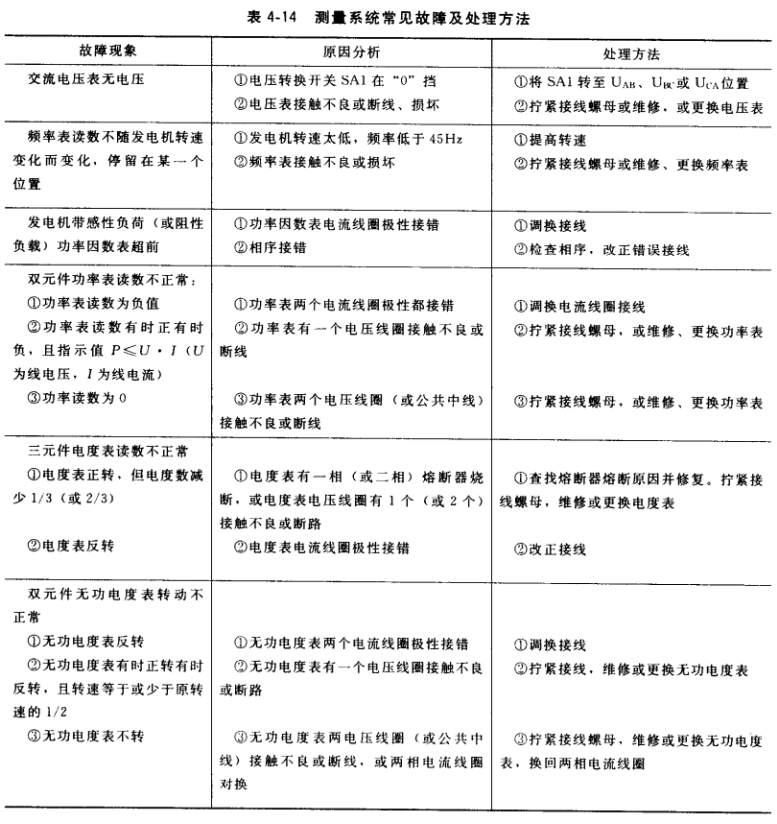 測量系統(tǒng)常見故障現(xiàn)象、原因分析及處理方法見表4-14。