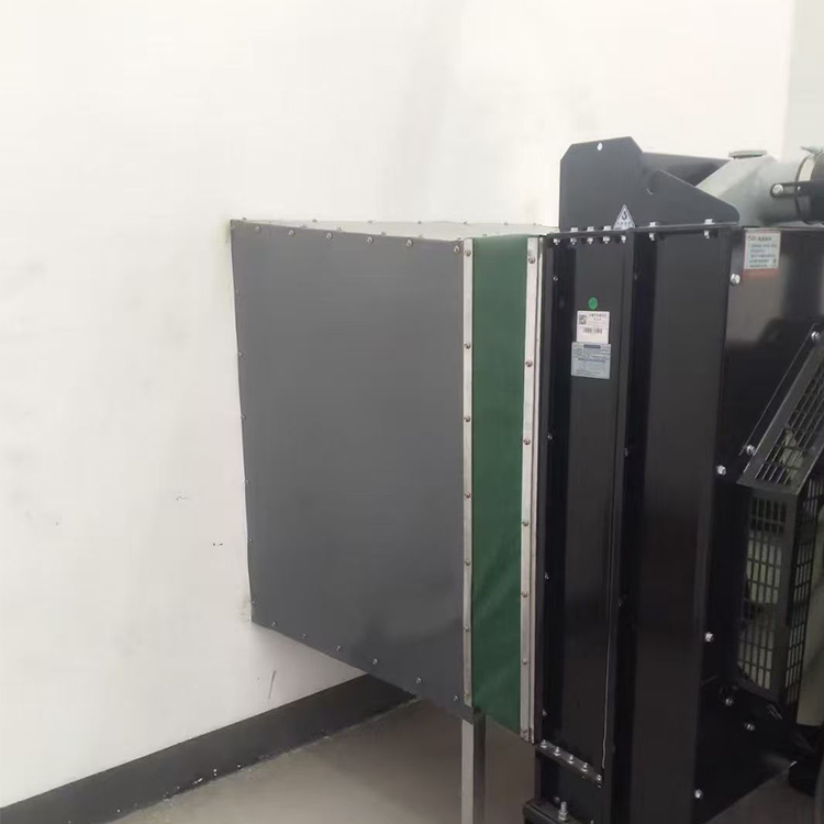 柴油發電機組的散熱風扇(通常在水箱側)是熱風的主要來源,排風口需正對風扇出風方向(偏差不超過 15°),確保熱風能沿 “風扇→水箱→排風口” 的最短路徑排出,避免因方向錯位導致熱風在機房內折返。