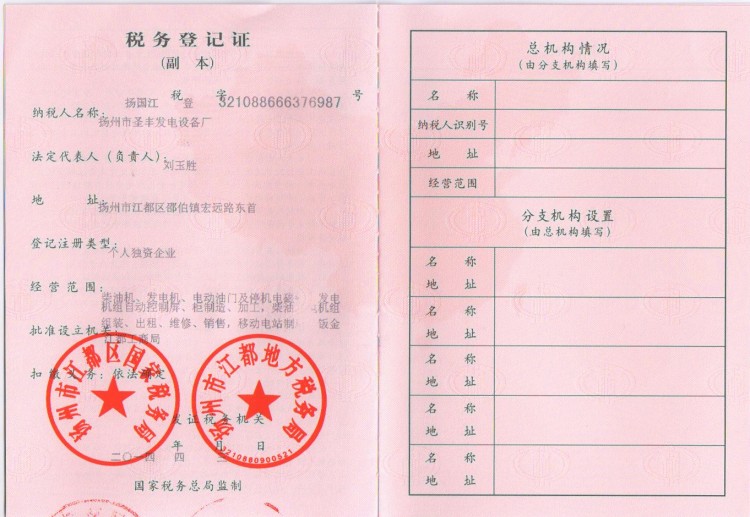 • 產品:圣豐稅務登記證