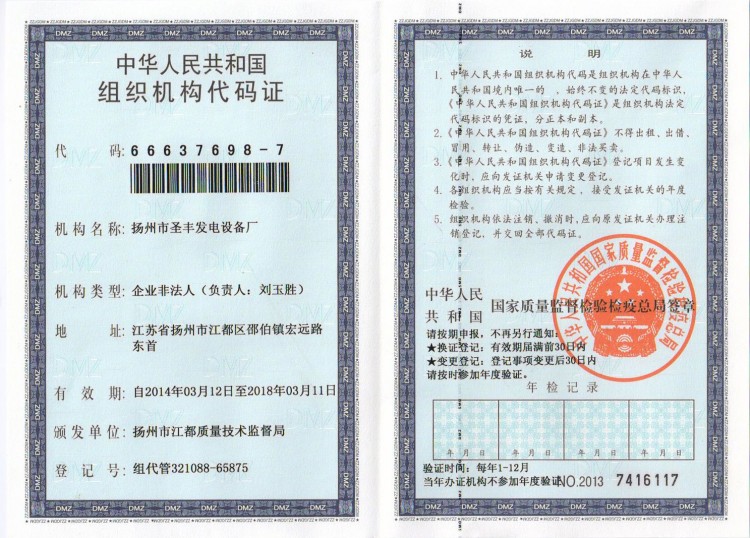 供應(yīng) > 發(fā)電機(jī) > 證書