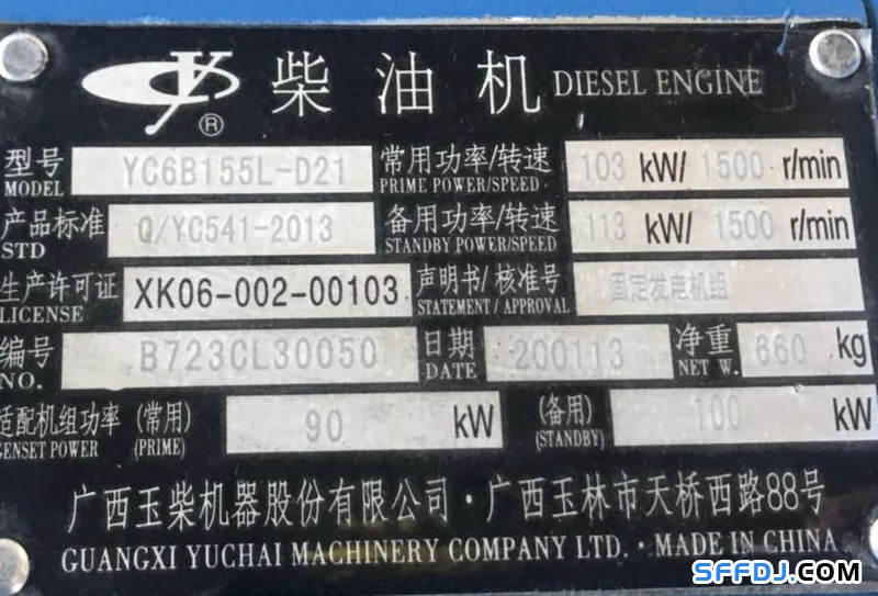 玉柴系列柴油發(fā)電機(jī)組技術(shù)參數(shù)